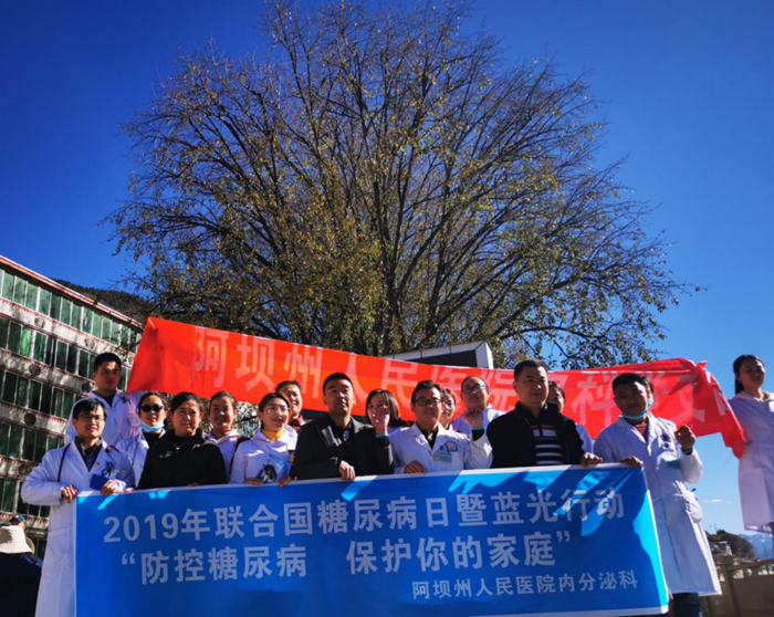 2019年 11月14日是第13个“联合国糖尿病日”,活动主题是“防控糖尿病 保护你的家庭”。为切实做好糖尿病预防工作,提升群众对糖尿病的了解,维护人民群众身心健康,在医院领导及相关部门大力支持下由医院内科党支部主办、内分泌科(内三科)承办,11月16日上午,在马尔康市九州宾馆对面广场开展了糖尿病防控义诊宣传活动。