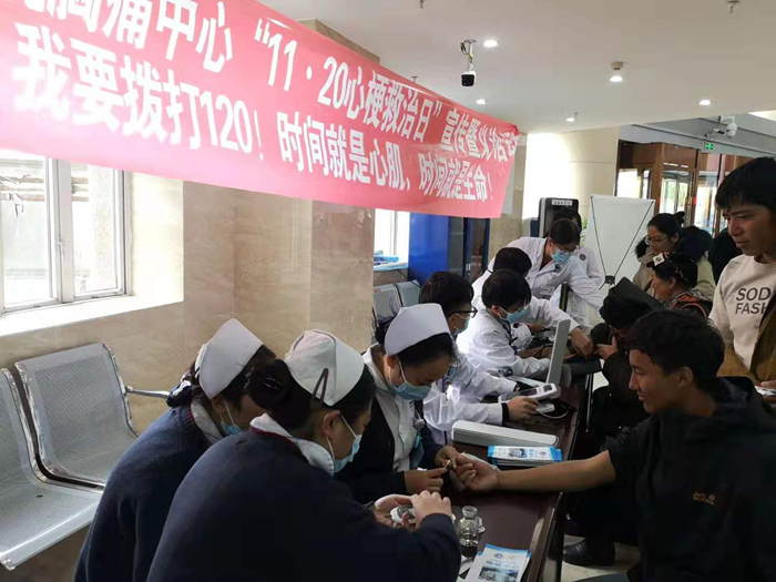 今年是全国第六个“心梗救治日”到来之际,州人民医院胸痛中心核心科室内二科、急诊科于11月20日上午在医院门诊开展了以“有胸痛,我要拨打120,时间就是心肌,时间就是生命”为主题的义诊宣传活动,唤醒民众对急性心肌梗死的防范意识,科学、理性地认识心梗、了解心梗,最大程度减少急性心梗发病带来的危害,共同推动我国心梗救治水平的不断提升。 活动现场中医护人员为前来咨询的患者和群众免费测血压、测血糖;开展胸痛健康知识宣教,心血管内科专科医生进行免费义诊,提高群众对急性胸痛的认识;发放健康知识宣传资料共120余份。通过活动开展让前来义诊的部分群众知晓了“1120的寓意:“有胸痛,我要拨打120”;“心梗救治,争取120分钟”。