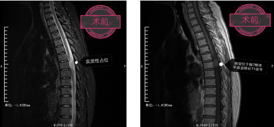 患者在进一步完善术前检查后,于11月19日在全麻下由黎明主任和文家智、向庆勇医生成功为患者进行了“经后路胸7椎管内占位病变切除术+椎管减压术+椎板成形术”。
