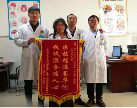 患者在麻醉苏醒后感觉左侧胸部疼痛消失,感觉也正常了,切口区也未疼痛,手术当日夜间就能安静入睡,终于睡上了好觉,患者第二日下午就能下床轻微活动,患者和家属非常满意。12月05日,患者痊愈出院,送上了锦旗感谢医生们解除了她的顽疾。