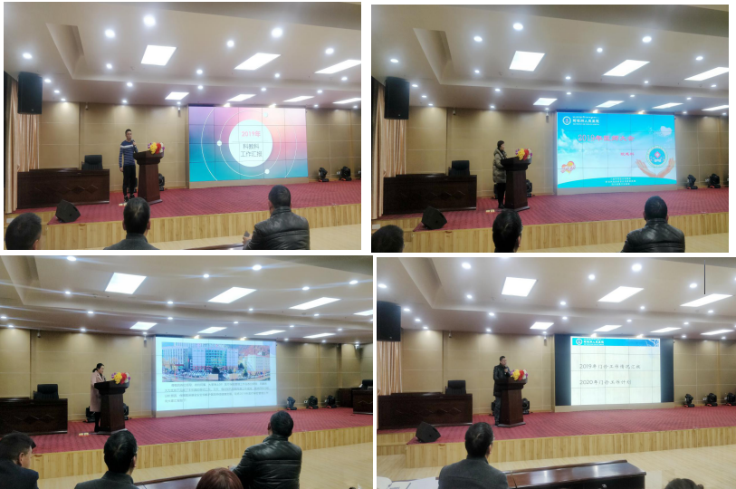 二是职能科室汇报2019年工作并就2020年重点工作进行通报。分别由质控办主任翁世平、医保办主任陈娟、院感科科长杨艳梅、科教科刘增平、门诊部主任丁世荣、医务科科长蒲光军先后根据管辖工作层面所采取的措施、取得成绩、存在不足、改进措施等方面进行的发言。