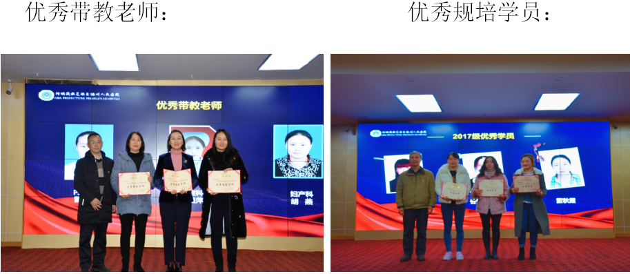 随后,对2017级优秀带教老师、优秀规培学员、及2019年优秀护理质量改善项目小组进行表彰和对规培学员颁发结业证。