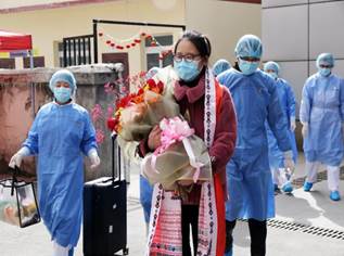 经过华西专家远程会诊指导,州人民医院医护团队积极有效治疗、精心护理,郭某呼吸道症状明显好转,体温持续正常,连续两次新型冠状核酸检测阴性,复查胸部CT双肺病变明显吸收,临床症状消失,经专家组评估,符合国家卫生健康委新冠肺炎诊疗方案(第五版修订版)解除隔离及出院标准,同意患者痊愈出院。