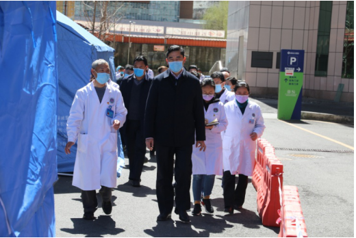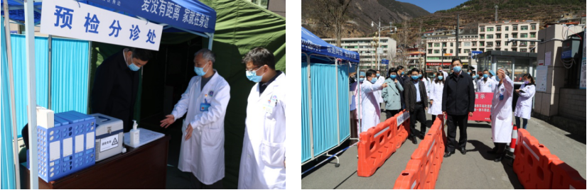 2020年3月14日省卫健委副主任宋世贵一行到阿坝州人民医院调研新冠肺炎的安全生产及质量提升工作,州政府副州长王树明、州卫健委主任泽郎达尔基、副主任蔡鹏飞、医政科科长田发兰陪同调研。