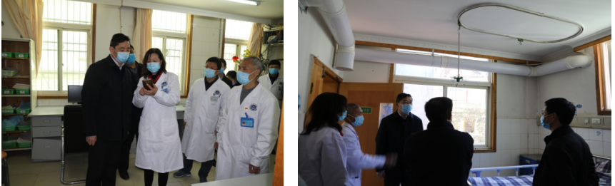在隔离病区内,宋主任详细了解了隔离病区医护人员的配置,查看了防护用品的台账管理及医院的物资保障情况,询问了简易负压病房的使用并听取了医院隔离病区的装修改造计划及传染病医院的建设规划。