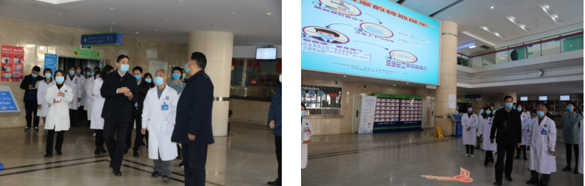 在预检分诊处,党委书记、院长谷运麒汇报了新冠肺炎疫情以来医院防控工作的开展情况,宋主任仔细查看了《预检分诊病人登记本》,详细询问了预检分诊的流程及筛查标准、“三通道”的建设情况。