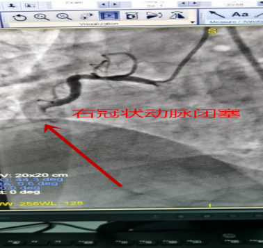 术前造影:患者右冠状动脉中段以远急性闭塞。