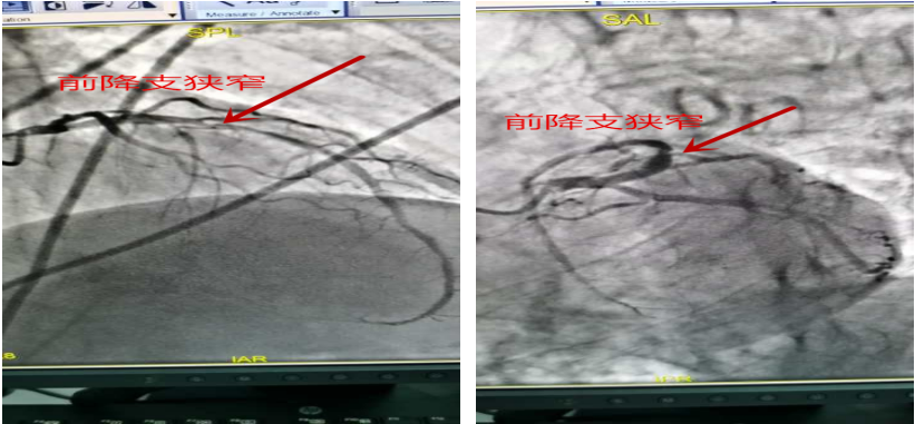 术前造影:患者前降支近段长病变,最重狭窄约85%。