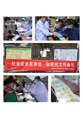 2020年4月14日上午,为提高群众对艾滋病防范意识,维护广人民群众身体健康,阿坝州艾治管办联合医院内科党支部、感染科、护理部在马尔康九州广场举行了以“社会安全在身边,你我抗艾同参与”为主题的艾滋病防治专项宣传义诊活动,将艾滋病防治知识送去群众身边。