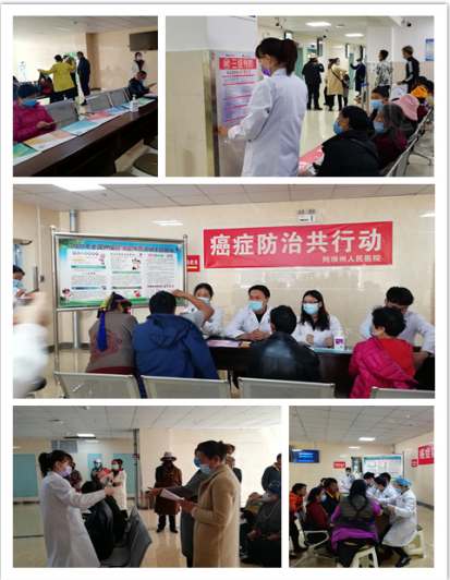 2020年4月16日,内一科、预防保健科及省医院对口支援医生共14人,在医院医技楼五楼组织开展癌症防治知识宣传活动,现场向病人及病人陪伴发放宣传肿瘤防治知识宣传单及资料,并提供咨询、答疑等多种形式的服务。向病人及病人陪伴讲解防治、抗癌的基本知识,帮助大家树立对肿瘤疾病的认识,引导他们养成健康的生活习惯,树立“早发现、早诊断、早治疗”的意识。