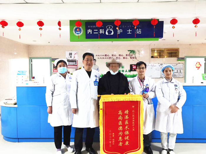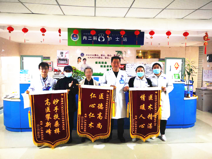 内二科:患者痊愈出院感谢医生送上锦旗