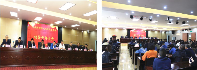 2020年5月21日下午,中共阿坝州人民医院委员会领导干部大会暨医院党委书记潘华见面会在州人民医院医技楼八楼会议室召开,州人民政府副州长王树明、省人民医院党委常委、副院长辜玉刚、州委组织部副部长肖军出席会议,大会由州卫健委机关党委书记庞林主持,州医院领导班子,各级负责人,党员共计约150余人参加会议。