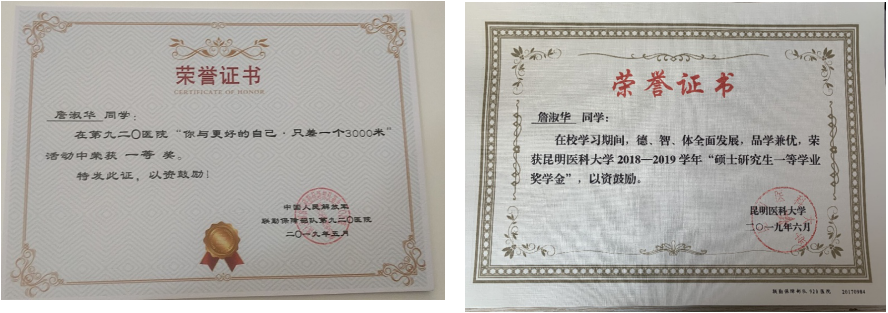 作为2017级在读硕士研究生,她十分珍惜这次自我提升的机会,在读期间刻苦努力,不仅完成了必修与选修课程取得了优异的成绩,还针对自己的研究方向和领域研读了大量的书籍和文献,于2018年参与并组织了云南省医学会肝脏病学会分会继续教育学习班-特殊人群乙肝的临床诊疗与管理,获得硕士研究生一等学业奖学金;2019年获得硕士研究生一等学业奖学金及云南省研究生政府奖学金;在完成了必修学业的同时,还通过了大学英语六级考试,提升了自身各方面的能力。