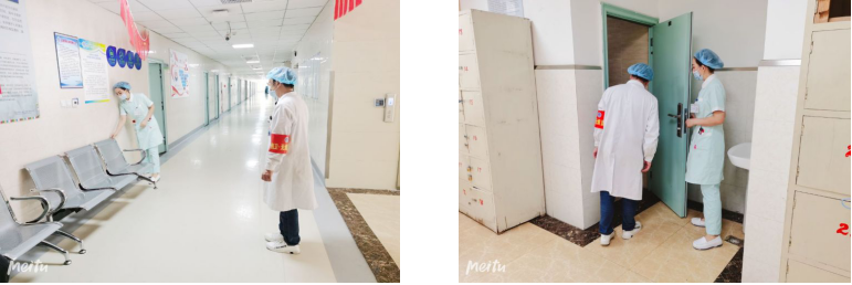 随后护士长王维慧和控烟巡查员对科室透析大厅、走廊、卫生间进行了巡查。