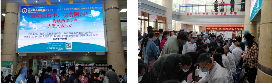2020年9月11日上午,由国家卫健委、海峡两岸医药卫生交流会主办的“两岸医携手,扶贫阿坝行——海峡两岸专家大型义诊活动”在州人民医院启动。随后海峡两岸的心血管、妇科、儿科、肿瘤、消化、骨科、中医等20余位专家和我院对应专业技术骨干参加义诊活动。