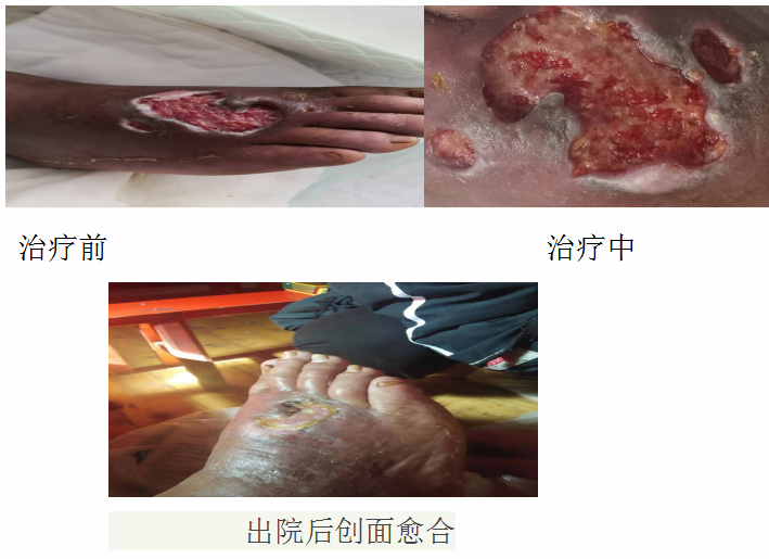 二、糖尿病足是糖尿病患者并发的以皮肤、神经、肌腱、血管、骨骼损伤为主要表现的一种慢性进行性病变,也是糖尿病患者致残、致死的主要原因。临床上多采用常规消毒清创换药、植皮等方法治疗糖尿病足,但疗效不尽如人意。流行病学研究资料显示,每年全世界约50%的截肢为糖尿病足所致,已日益成为较严重的公共健康问题。为提高糖尿病足的治疗效果,采用烧伤创疡再生医疗技术治疗了1例4级糖尿病足患者,取得了较为满意的临床疗效。患者58岁男性,诊断:糖尿病、通风伴皮肤破溃。