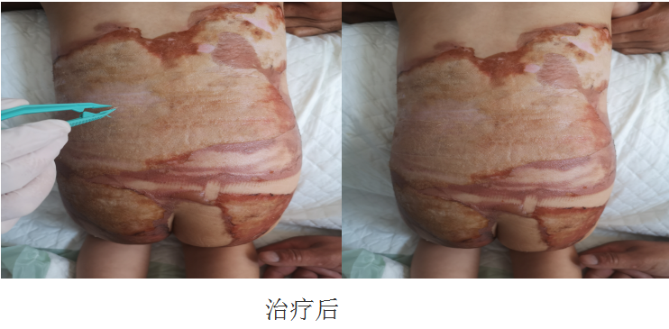 经过前期VAD及再生医疗换药后30天,左侧肉芽组织及皮瓣生长压疮范围缩小。