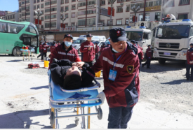 演练中,地震造成房屋垮塌,震中停水停电,当地医疗机构基本处于瘫痪状态,我州应急救援队得到甘孜指挥部应急求援后,及时上报领导,按领导要求启动救援应急预案,并迅速组织救援队赶赴现场开展应急救援和处置善后等工作。