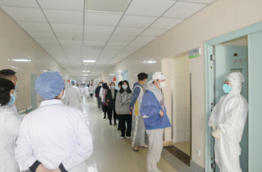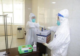 医院接到通报后,迅疾召开院疫情防控领导小组会,决定启动《大规模新冠病毒检测预案》。各相关科室迅速开展应急工作,2名无症状感染者所在病区——内三科立即封锁各出口,所有病区人员只进不出;保卫科人员立即到位并在各出口进行值守;护理部采样人员按时到达指定采集点,摆放好物资,医护人员在缓冲区进行防护用品的穿戴,病区按医院安排有序组织病区人员前往应急采样点,等候区内秩序引导员带领病区人员有序排队登记采样,并为每人测量体温,人与人之间距离保持一米;采样工作人员完成采样后,对标本进行密封装箱并对新冠病毒样本转运箱进行消毒,通知中央运输人员转运标本至检验科,检验科按检测计划组织人员立即开展检测工作。