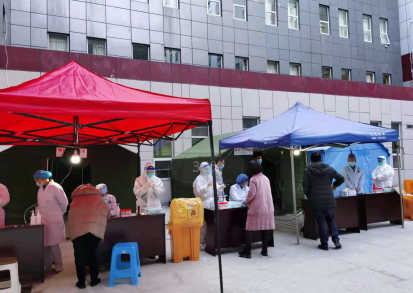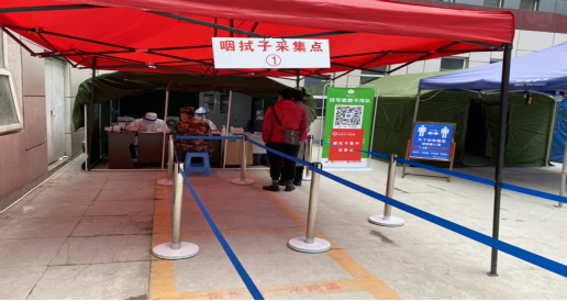 全院各部门通力合作,进一步突破瓶颈,优化流程,不断提高接诊采样能力。经周密设计和高效建设,12月12日在室外空间设专门区域作为新冠病毒核酸筛查门诊和采样点。除发热患者在发热门诊进行检测外,非发热人员取号、流调、开单、缴费、采样均可一站式完成,现场搭建帐篷,强化标识并设专人引导,避免人流往返和交叉,在确保感染防控的基础上,尽可能提供优质服务。