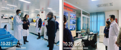 走访过程中,每到一处,潘华书记与刘志红副院长都与值班人员问好,亲切交谈,询问春节期间各科室的需求,并向他们致以亲切的问候和最美好的祝福。