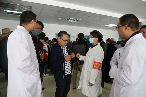预检分诊台前挤满了患者,来看病的患者不清楚自己的疾病应该挂哪一个科室,双语导医一直忙于解释、记录对汉语不太熟悉的藏族患者的信息,病人多,导医少,分诊台前排着长长的队伍。党员志愿者、医院优秀党员示范岗、康复科主任董金萍立即走到分诊台内,加入对患者的分诊,胃肠疾病的挂内一诊室、心血管疾病挂内二诊室、糖尿病挂内三诊室,传染病的挂感染性疾病科到感染性疾病住院部诊治,很快病人得到分流,挂号室的压力减小,准确挂号后的患者依次到各候诊大厅等候。