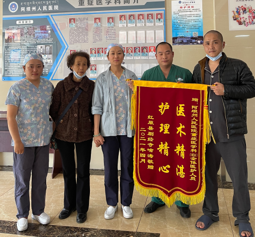 重症监护室患者痊愈出院赠送锦旗感谢医护