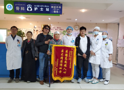 神经外科患者痊愈出院赠送锦旗感谢医护