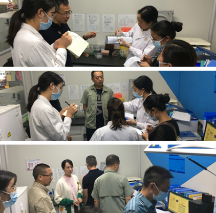 在指导现场,由阿坝州临床输血质控中心从输血标本采集到实验室输血相容性实验的操作到临床输血质控工作管理每一个流程进行演示,专家们悉心指导需注意的每一个质量控制环节。