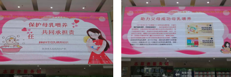 宣传周期间,医院在门诊大厅LED电子屏上滚动播放、宣传母乳喂养知识,使广大群众一目了然,增加印象,提高了群众对母乳喂养和持续哺乳的认识。