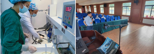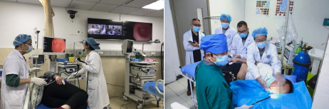 黑水县人民医院内镜室装修一新。患者井然有序,医护人员各司其职,忙忙碌碌。小荣护士在指导内镜清洗消毒,高兴林医师耐心细致指导年轻的麻醉医师,杨林医师手把手为消化内科医生指导讲解胃镜检查、内镜下诊断、治疗。杨林副院长与黑水县医院苏拉木院长内科主任拿么学共同见证了内镜远程会诊系统的建成,并通过现场连线阿坝州人民医院内镜室,康乐斯基主任在马尔康为患者做无痛胃镜,实时与黑水消化内科医生线上学习交流。义诊活动紧张有序,中午所有人员简单的便餐后又立即投入工作,有12名患者享受到免费胃镜检查,但更重要的是州县两级医院消化内科团队间的合作更紧密了交流更便捷了为民服务的能力又提升了。相信通过州内更多的专科联盟的建立,必将有力推进我州消化内科整体水平的提升,必将有力推进我州消化内镜诊治水平整体提升,在整体联动基础上必将有力推进对严重影响我州农牧民生活的食道癌胃癌等疾病的早诊断、早治疗水平的提升。