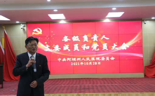 2021年10月28日下午,阿坝州人民医院党委开展学习贯彻习近平总书记“七一”重要讲话精神专题宣讲会。邀请州委党校党建高级讲师、州委宣讲团成员钟小芳来院进行宣讲,州人民医院党委书记潘华主持会议,全体党员、入党积极分子、共青团员和医院各级负责人共140余人参加了学习。