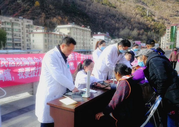 11月20日,为提高公众对心梗严重性与防治重要性的认识,普及急性心肌梗死的规范化救治流程,在医院领导的大力支持下,我院胸痛中心由心血管内科(内二科)、呼吸、内分泌内科(内三科)及急诊科联合举办了以“有胸痛,我要拨打120、时间就是心肌,时间就是生命!”为主题的“心梗救治日”义诊活动。此次共义诊100余人次,免费为病人测量血压、测血脂、健康宣教。