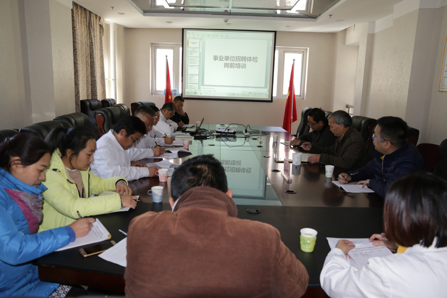 为进一步规范事业单位招聘体检流程,正确掌握体检操作规程、体检标准和检查内容,根据阿坝州人社局的要求,2017年12月15日下午,在我院召开了事业单位招聘体检岗前培训会。会议由体检科科长但立峰主持。阿坝州人社局事业单位人事管理科科长叶枫、副科长泽亮;各体检科室体检医生参加了会议。