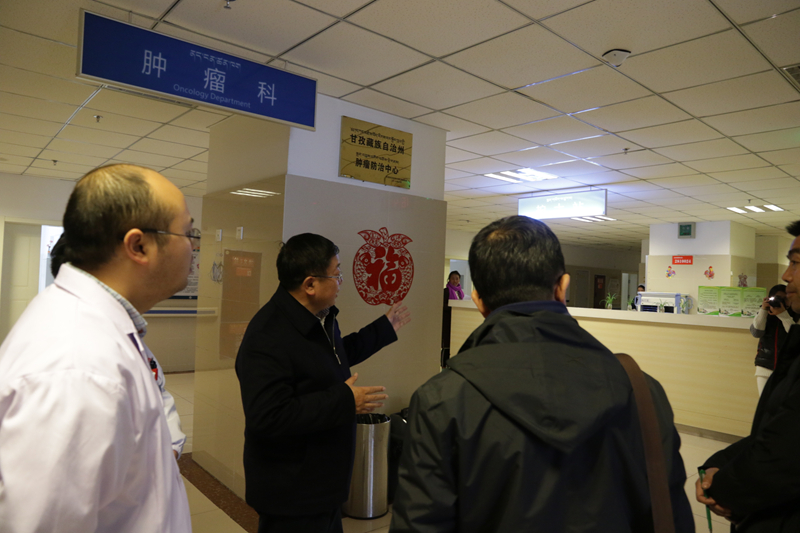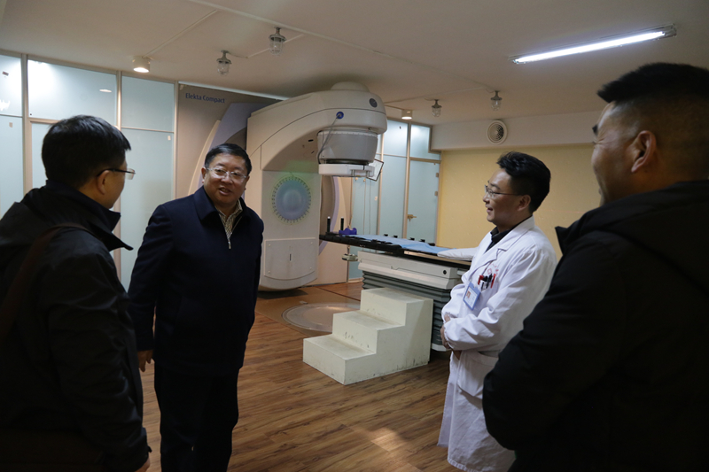 参观了甘孜州医院新病区门诊、行政办公楼医务部、外联部、信息中心、口腔华西口腔分院、检验科、放射科,重点参观了肿瘤科和放射治疗中心: