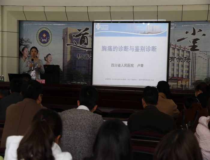 为了积极推进我院胸痛中心建设,提高胸痛诊治水平,规范诊疗行为,优化诊疗流程,使胸痛患者得到快速诊断和及时治疗,我院利用四川省人民医院对口支援“传帮带”工程专家组来院工作的契机,于2018年3月27日至3月29日在门诊八楼会议室举行了系列专题讲座。
