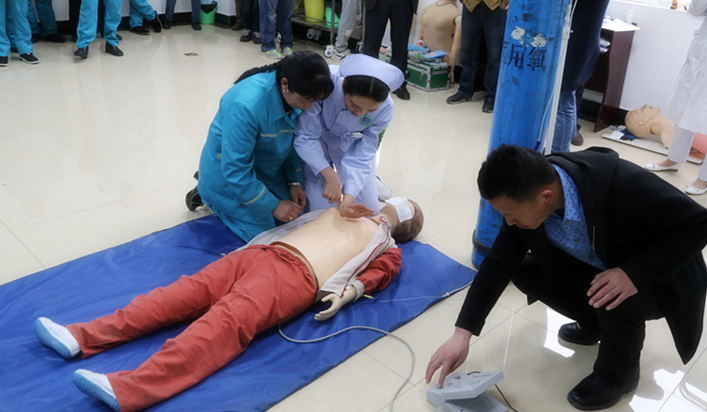 为普及急救知识、提升应急处置能力,在突发需急救的情况下,人人能够运用急救技术,争分夺秒争取挽救抢救生命的时间,同时能进一步优化院内急救流程,确保院内急救在第一时间处理及时有效。2018年4月19日下午16:30分在我院住院部十一楼示教室,由总务科牵头组织,护理部、急诊科积极配合,在全院开展了覆盖医院后勤人员及成都巧媳妇保洁公司保洁人员的心肺复苏培训。