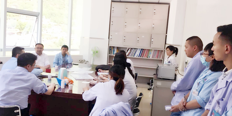 下午13:30专家组成员来到我院重症医学科,杨林副院长、重症医学科张泽奎主任向各位专家组成员介绍了我州和我院重症医学科的发展历程及目前病房环境、设备、学科建设等现状。专家组成员对我州重症医学科学科建设提出了宝贵真挚的建议。专家们在病房进行了分组、分病种查房,针对我院重症科遇到的疑难病例,专家组成员详细询问了病人情况和目前治疗方案后,根据各项检查结果结合我院重症医学科的实际情况进行讨论,对该疑难病例制定了下一步治疗方案。