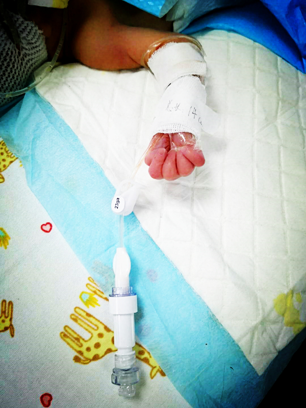 2018年5月30日,我院儿科,成功为1名孕周为“29+4”周的早产儿实施PICC置管,成功填补了我院新生儿PICC操作技术空白。该名早产儿因孕周不足,出生体重仅1.25KG,需要连续使用高营养液体补充热卡。由于外周静脉留置针穿刺技术对早产儿静脉保护效果较差,PICC置管技术在临床上的应用极大的减少了对患儿静脉穿刺的次数,明显减少患儿痛苦,提高输液效率,降低静脉外渗,我科经临床检验决定对该名患儿实施PICC置管。科室主任夏清、主管医生谢新权支持护理部开展此项技术并积极指导配合,与患儿家属签订了早产儿PICC置管同意书及完善相关辅助检查。