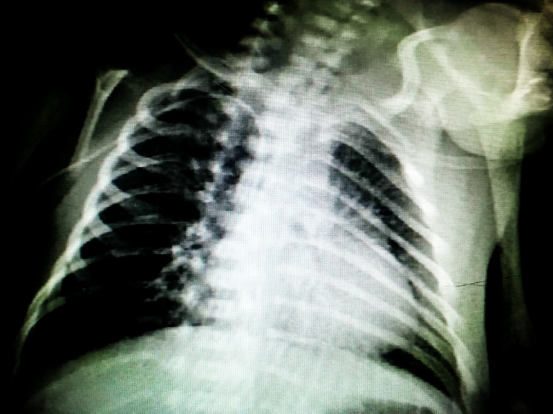 5月30日14:00,在护士长苏秀蓉帮助支持下,新生儿专科护士蔡寅秀、王雪在详细了解患儿病例资料,充分评估患儿病情和血管条件下,对该名患儿进行了PICC置管。术中选取右侧贵要静脉为最佳穿刺,沿静脉走行达上腔静脉并通过拍片确定导管尖端位于上腔静脉,穿刺过程顺利,患儿无特殊不适。