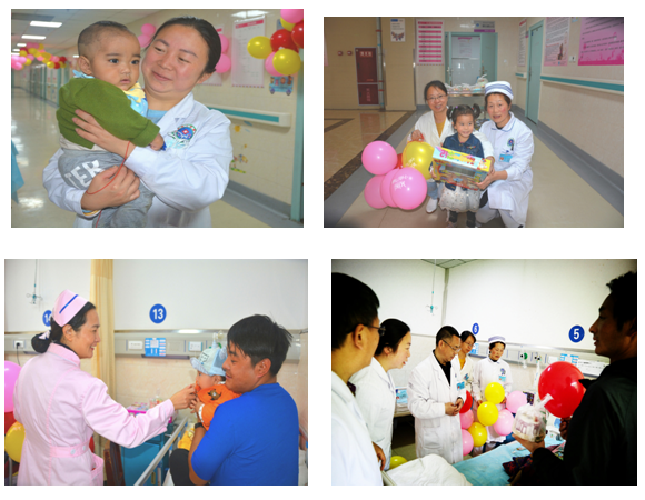 “六一”儿童节来临之际,为了让小患者与健康儿童一样享受阳光般快乐的节日,儿科如往年一样为小患儿送上了节日的祝福,在“六一”这个特殊的日子里,医护人员与小朋友和家长们欢聚一堂,共同庆祝这一节日。