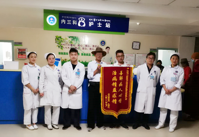 7月12日,内三科医护收到了一位来自马尔康卓克基病人的锦旗,患者以这种特别的方式由衷地表达了对科室医护的感激及赞扬之情。