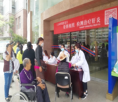 2018年7月28日是第8个“世界肝炎日”,今年将以 “积极预防,主动检测,规范治疗,全面遏制肝炎危害”的主题向广大群众普及病毒性肝炎防治知识,提高人民群众对肝炎的科学认识。2018年7月28日(星期六)上午,阿坝州人民医院感染性疾病科和预防保健科在门诊大厅开展了“科学发现肝病,规范治疗肝病”为主题的健康教育宣传和现场义诊活动。