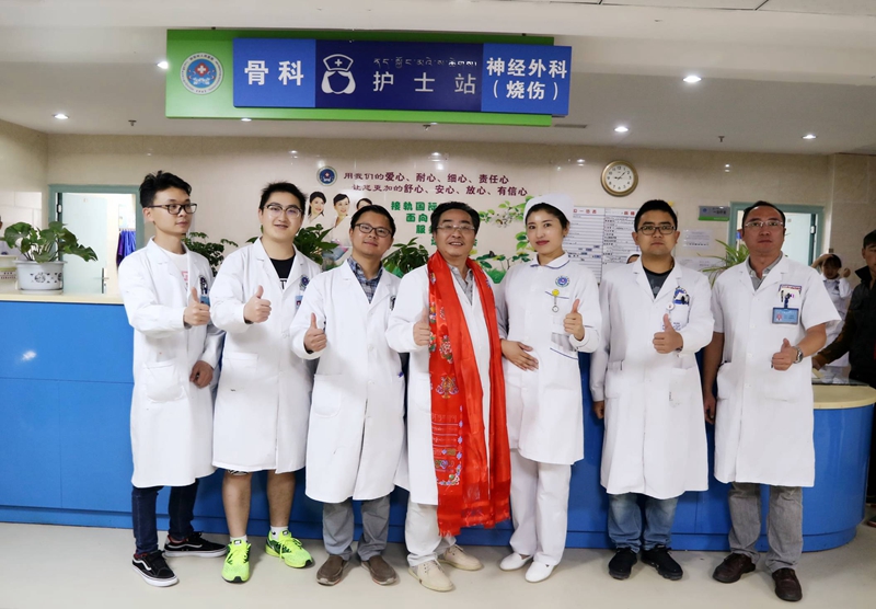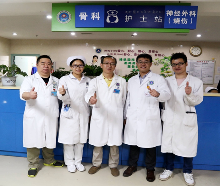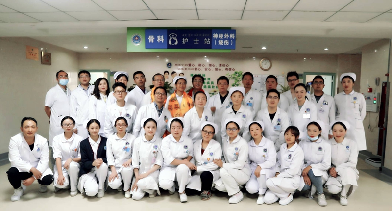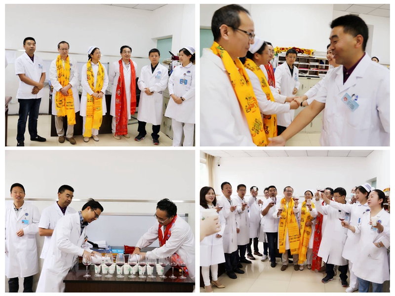 8月1日上午,杨林副院长带领职能科室负责人来到外一科,按照藏族特有的礼仪习俗由杨林副院长和职能科室负责人分别为神经外科、骨科的主任和护士长敬献哈达,端起庆祝的香槟与科室医护人员共同见证了这一喜庆而特殊的时刻。