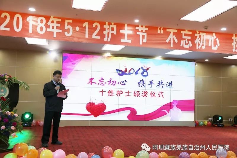 副院长胡林宣读荣获2018年阿坝州人民医院第三届十佳护士的名单,由蔡鹏飞副主任及我院领导班子为获奖的十佳护士们颁发了荣誉证书。