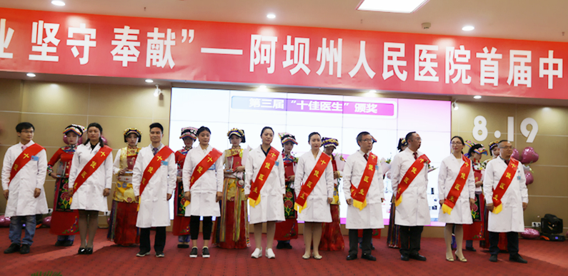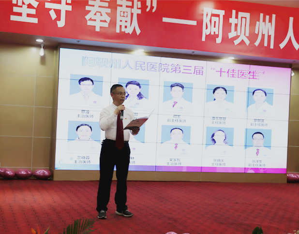 州人民医院党委委员、副院长胡林在活动现场宣读了《阿坝州人民医院党委关于表彰第三届十佳医生的决定》并由领导们为阿坝州人民医院第三届十佳医生颁奖。