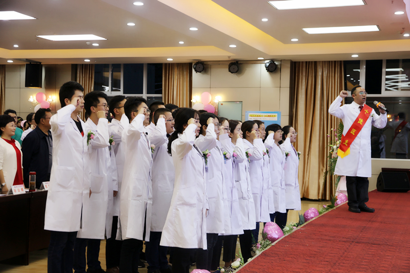 庆典会上各科优秀年轻医师代表将代表科室进行庄严宣誓,庄重承诺医师誓言。