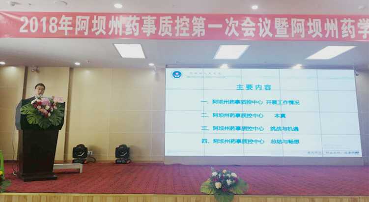会议开幕式上,由阿坝州人民医院杨林副院长致欢迎词,杨林副院长介绍了我院药剂科建设、发展及工作开展情况;阿坝州卫生计委蔡鹏飞副主任代表州卫计委欢迎专家来我院开展学术讲座和业务指导,肯定了阿坝州药事质控中心成立以来开展的工作和取得的成绩,要求全州药学人员加强学习,提升专业能力和水平,为全州人民的健康服好务;四川省药事质控中心秘书杨勇代表省药事质控中心对阿坝州药事质控中心开展切实有效的工作表示感谢,介绍药事质控工作承担责任和今后的工作要求和方向。