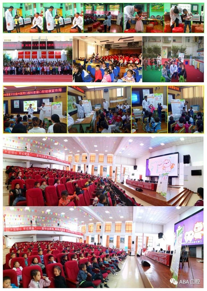 2. 为马尔康市区四所小学共超过700名小学生(有学前班、一年级、二年级)进行口腔健康知识宣讲活动,丰富多彩的海报和展板(大手牵小手,争做护牙小卫士关注对象:家长和小朋友;一口好牙,晒出自信,笑出强大 关注对象:成年人上班族;关爱老人,携手护牙 关注对象:老年人;六龄齿和窝沟封闭等)、动静结合的PPT(刷牙、涂氟、窝沟封闭等)、活灵活现的视频(刷牙歌、卫生部窝沟封闭宣传片等)、热情积极的现场互动将“圆弧刷牙法”、“涂氟、窝沟封闭——牙齿的保护衣”、“六龄齿伴我终生”等口腔保健知识采用通俗易懂、有趣的语言进行宣讲,深入孩子们心里;