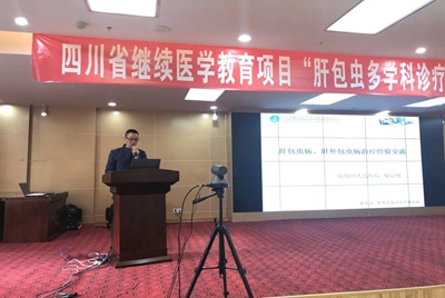 学术会议上午,四川省医院罗兰云教授为大家讲授了《中晚期肝泡型包虫病的外科治疗难点和决策》;阿坝州人民医院喻定刚主任医师为大家讲授了《包虫病合并肝外包虫病的治疗》;阿坝州人民医院唐龙主治医师为大家讲授了《肝包虫病的影像学诊断》;张宇教授为大家讲授了《 药物“新辅助”结合微创手术治疗腹腔多发囊性包虫》。